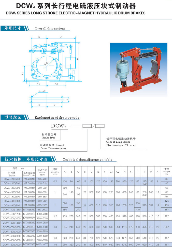 DCW3系列長(cháng)行程電磁鼓式制動(dòng)器